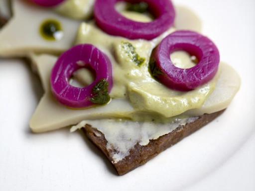 Lasagne med marinerede bønner og rødløg